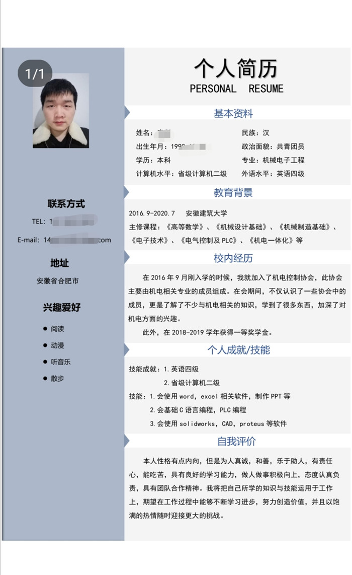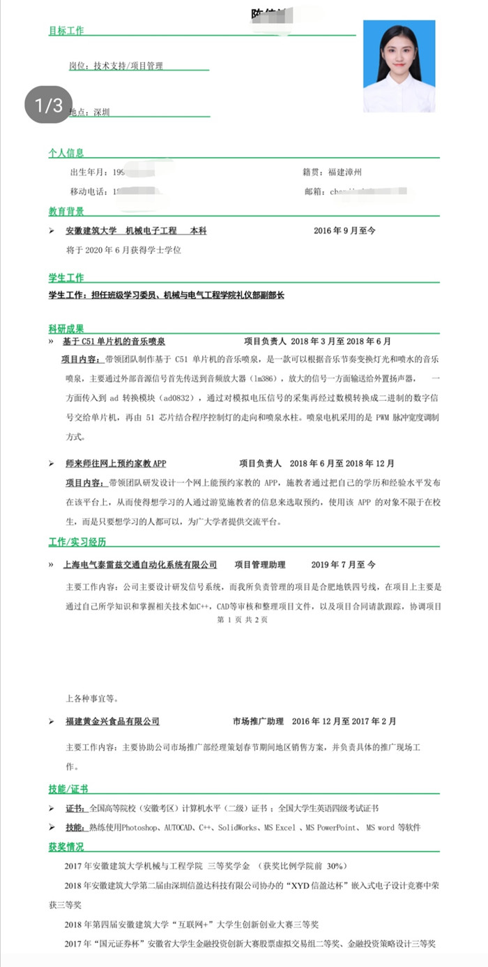 本网讯 现展示第一阶段推选出的线上“最美简历”优秀作品如下:
