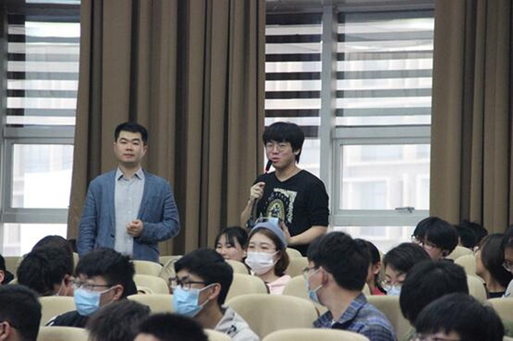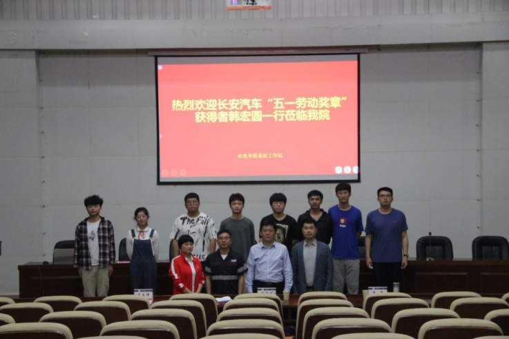 机电学院副院长雷经发教授致开幕词,对韩宏圆的到来表示了热烈的欢迎。韩宏圆结合自身经历,以《无奋斗·不青春》为主题,结合个人成长经历及获得荣誉,与参会的同学们展开深入交流。肯定了建大学子吃苦耐劳,甘于奉献,迎难而上,欢迎同学们到劳模工作室做客。在互动环节中,同学们积极交流,现场气氛十分活跃。