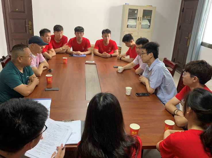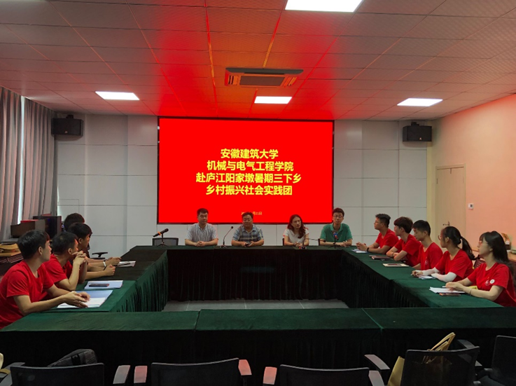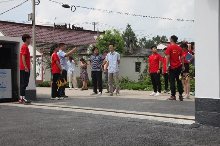 在肥东县包公镇板桥中心村,同学们与肥东县政府及村干部进行了亲切的座谈。校团委张毅老师代表学校给同学们送来了亲切的慰问。