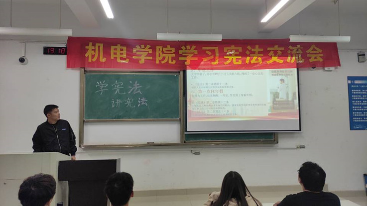 本网讯 为迎接第八个国家宪法日,使同学们深入了解宪法、尊崇宪法,弘扬宪法精神,增强法治观念,机电学院团委举办“学宪法•讲宪法”主题团日活动。