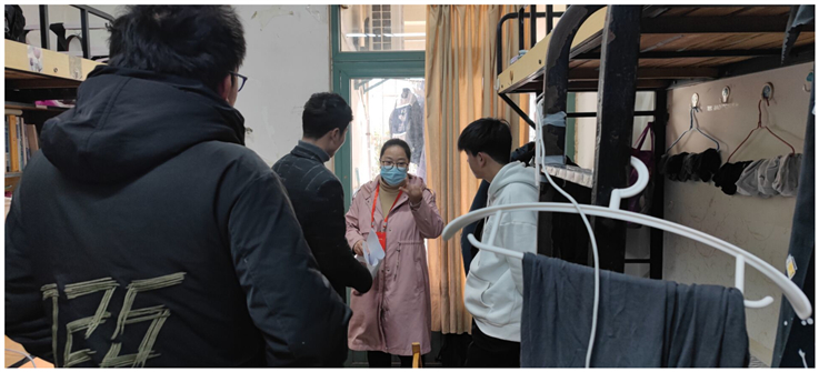 2月20日,机电学院党委副书记何鹤立带领全体专兼职辅导员走访学生宿舍。宿舍巡查仔细检查了宿舍卫生和安全现状,详细了解各寝室返校情况,认真询问了同学们的假期生活与新学期课程学习安排情况。