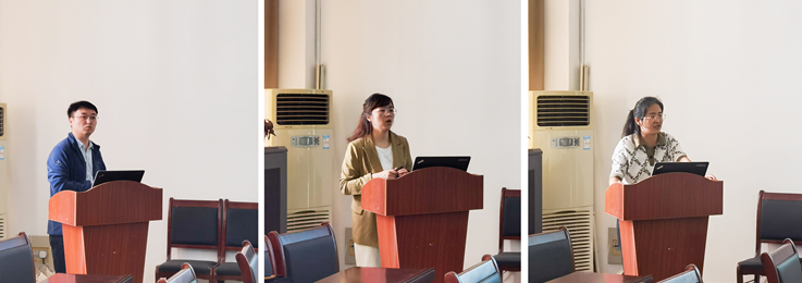 于曈、周琳、董必春、龚雪、赵静五位老师依次进行了课程思政讲课,学院领导、教学委员会成员进行深入交流沟通,并提出宝贵意见。
