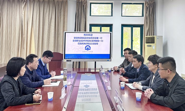 本网讯 3月31日下午,安徽先徽食品有限公司董事长李先辉先生,会同安徽职业技术学院现代商务学院院长杜淑琳教授一行到访机电学院开展调研交流。院党委书记叶少宝主持会议,副院长陈中、工业设计系主任刘牛及工业设计系教师参加座谈。