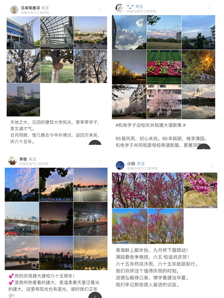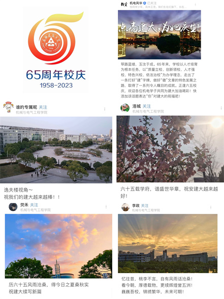 本网讯 六十五载进德弘毅,筚路蓝缕启山林;六十五载博学善建,栉风沐雨砥砺行。为营造浓郁的校庆文化氛围,激发建大人爱校荣校的热情,机电学院易班工作站开展“机电学子迎校庆,共祝建大谱新章”线上祝福征集活动,为母校送上诚挚的祝福和美好的愿望。