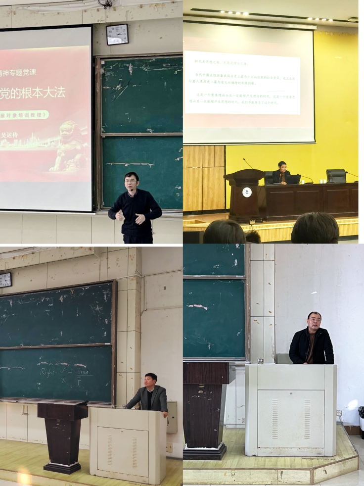 培训班邀请了具有理论功底深厚、党建经验丰富的领导专家集中授课。校党委常委、组织部(党校)部长吴运传,统战部常务副部长、长三角区域高等教育一体化示范区共建办公室主任朱涛,电信学院党委书记孙长城,马克思主义学院党总支书记、副教授李万银,机电学院党委书记叶少宝,组织部(党校)副部长、统战部副部长陈泉,机电学院学生党支部书记江双分别围绕学习习近平新时代中国特色社会主义思想、党章党规党纪、青年知识分子的理想追求和使命担当、党员的权利义务、端正入党动机、党的历史、发展党员的程序等主题授课。