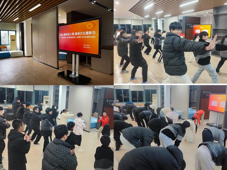 本网讯 为推进健康中国建设,落实全民健身计划,传承弘扬中华优秀传统文化,丰富研究生课余文体生活,12月26日下午,机电学院研究生第一党支部组织全体党员、积极分子开展“强心健体促人格,继承文化建新功”传统体育《八段锦》学习党日活动。