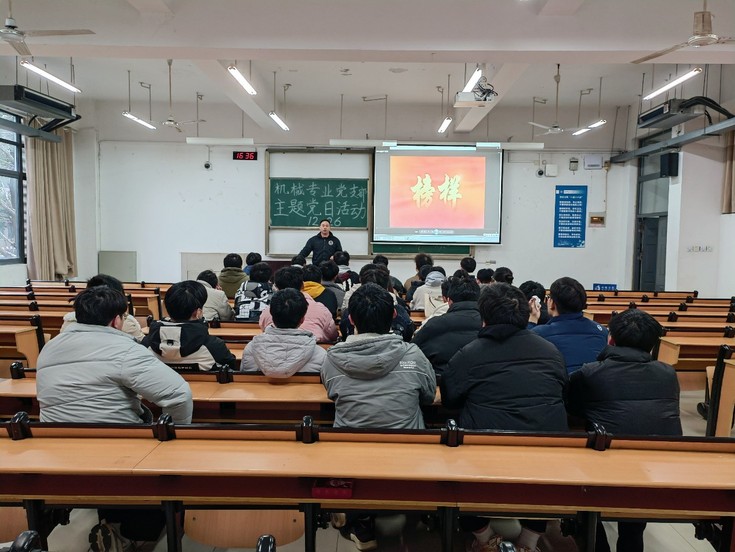 本网讯 为进一步加强党员党性教育,学习优秀共产党员的先进事迹,引导党员树牢为人民服务的宗旨意识,12月26日下午,机电学院机械专业学生党支部在逸夫楼5122教室组织观看《榜样8》主题党日活动。党支部全体党员和入党积极分子参加。