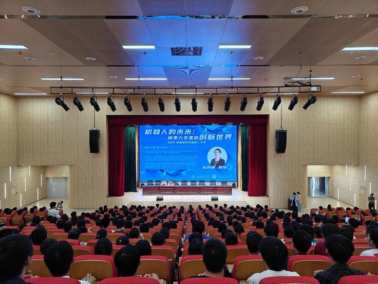 会后,一场别开生面的科普讲座正在东至二中的报告厅举行,由机电学院院长张润梅教授带来的主题为“机器人的未来:探索大学里的创新世界”的精彩讲座,来自高一高二年级的500余名学生座无虚席。张润梅院长首先介绍了ku游官方2024年度的招生政策及机电学院概况、培养体系、发展前景,以机器人技术为载体,分享了新兴产业发展现状与核心技术,探讨了新兴产业领域分布和学生未来的职业规划之路。通过对高一高二年级学生的覆盖式宣讲,激发了广大同学对专业的兴趣,提升了对ku游官方的认知度和认可度,预埋下志愿的种子,为招生宣传持续发力,以期吸引更多优秀学子报考ku游官方。