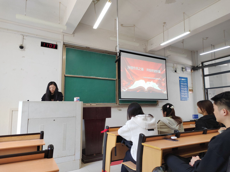 活动伊始,支部书记杨慧以“作风建设永远在路上”为主题作动员讲话,强调全体党员要秉持“严、真、细、实”的工作态度,当好政策理论的“宣讲员”、同学成长的“护航员”。她指出,本次分享会是支部深化作风建设的生动实践,也是推动党建与学业发展同频共振的创新探索,要求党员以“躬身入局”的责任感,将先锋模范作用贯穿于学业帮扶全过程。