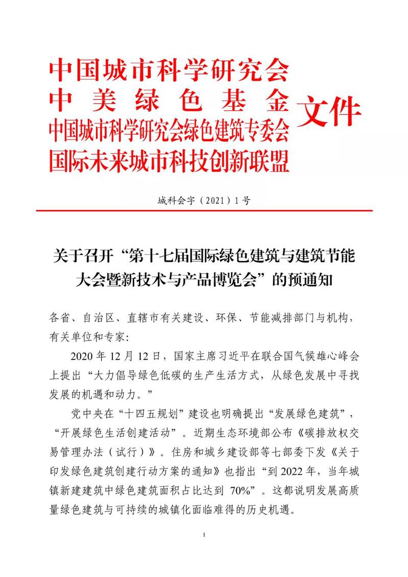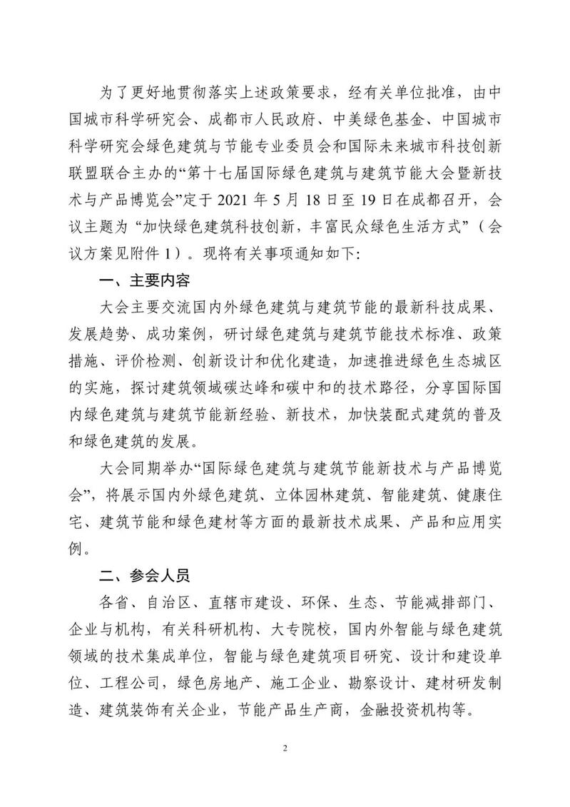 第十七届国际绿色建筑与建筑节能大会将于5月中旬在成都召开