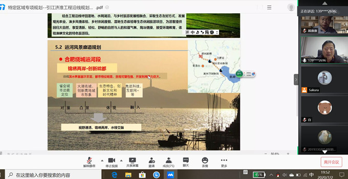刘复友副院长从安徽引江济淮工程背景、规划定位与目标、生态保护、旅游发展、分区建设与保障措施等方面解读了安徽引江济淮工程沿线生态保护和旅游发展总体规划,规划定位为发展规划的专项方案,体现战略性、宏观性,增强对工程沿线协同保护绿色发展的指导和约束功能。强化工程输水水质和生态环境保护,充分发挥工程综合效益,统筹协调沿线各类规划,强化土地用途管制,通过协同保护、绿色发展、分区引导等有效手段,优化工程沿线空间布局,促进区域经济社会可持续发展。