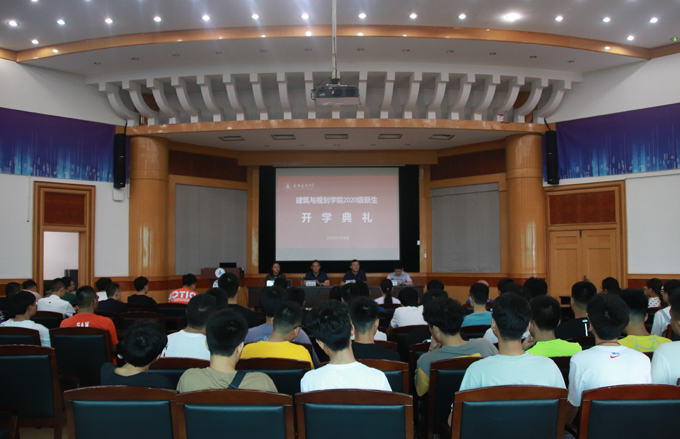 本网讯 9月16日,建规学院按专业分三场举行2020级新生开学典礼和专业教育。学院领导班子、各专业系主任、新生班级专业导师、行政科室负责人、辅导员及全体新生参加开学典礼。