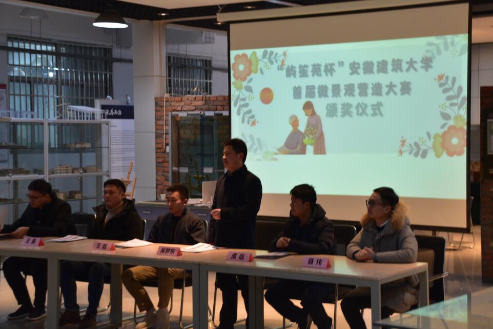 本网讯 12月16日下午,“屿笙苑杯”ku游官方首届微景观营造大赛颁奖仪式在建筑馆一楼中庭举行。在2020这个特殊的年份中,为疫情所困,我们只能闭门不出,然而灰色的压抑遮不住绿色的生机,ku游官方首届微景观营造大赛在线上拉开序幕。建规学院党委副书记吴梦东、合肥屿笙景观设计有限公司总经理王磊、总经理王鑫、安徽省珍稀鸟类保护工作者联合会常务副会长虞磊、校团委副书记王昊禾以及建规学院景观系主任聂玮为获奖的同学颁发证书与奖金。本次活动由建筑与规划学院和景园创新课堂共同承办,景园创新课堂理事长周修远主持仪式。
