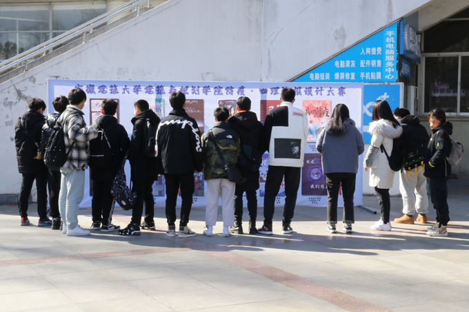 本网讯 12月31日,建规学院防疫心理海报设计大赛优秀作品展在北区食堂前广场顺利举行。