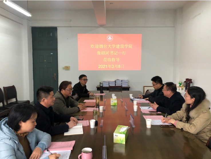 本网讯 3月8日,烟台大学建筑学院张绍河书记率副书记、辅导员一行到访建规学院,建规学院领导班子成员、专业系主任、团委书记和辅导员参加了座谈。