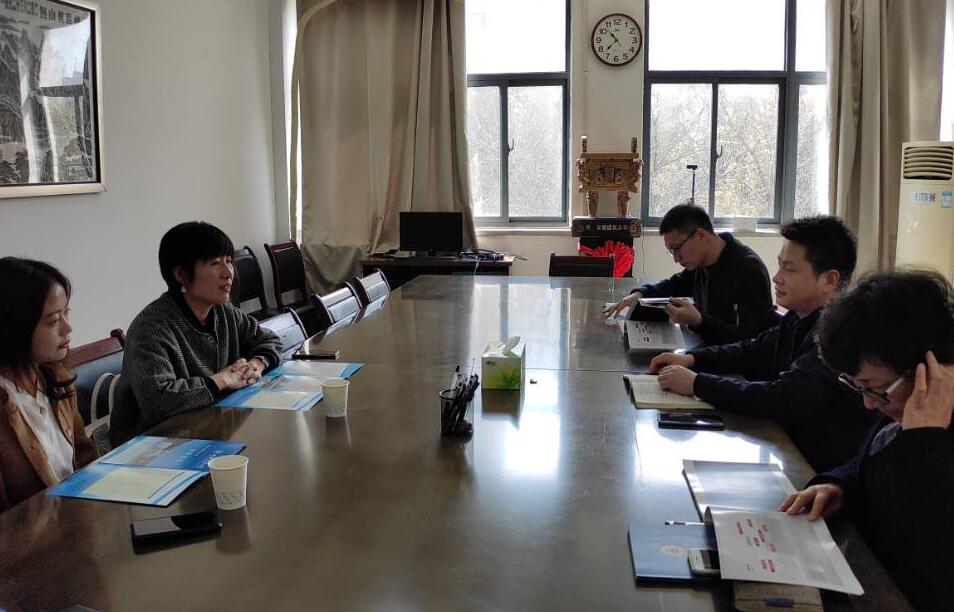 本网讯 3月25日,洲宇设计集团合肥分公司副总辛贤敏一行来到建规学院,洽谈毕业生实习就业事宜。学院党委副书记吴梦东、毕业班辅导员与来宾进行座谈。