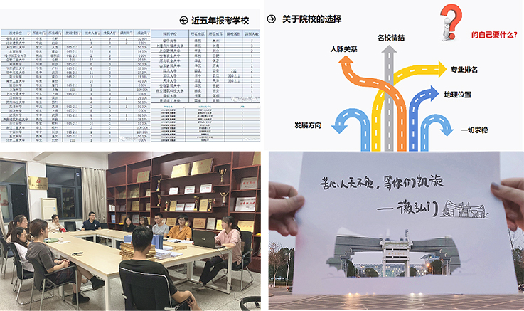 学院从大一到大五分别进行考研辅导,制作建筑学、城乡规划、风景园林三个专业考研地图,分析历年来考研数据,为学生报考制定计划,做到一人一校一策。帮助考研学生明确考研目标、了解考研信息,进一步有针对性的指导学生做好学业规划。辅导员做好信息统计梳理,建立学生信息库,并依据考研学生成绩情况,组建考研复试指导群,积极邀请相关专业老师进行复试准备指导及调剂志愿填报工作指导,做到精准帮扶。针对心态不稳定的同学,提供考研专项心理疏导,帮助同学们缓解巨大的考试压力,减少外界的负面影响。学会掌控情绪,才能笑到最后。