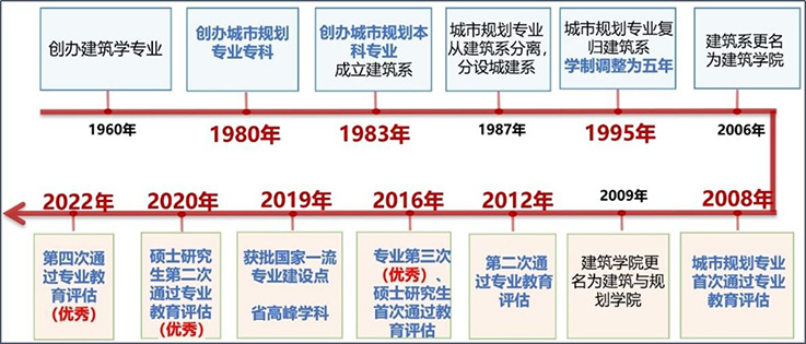 学校1980年创办城市规划专业,是安徽省最先、全国较早开办的专业,2005年获批二级学科硕士点,2008年通过中国高等学校城市规划专业教育评估,具有工学学士授予权和城乡规划一级学科硕士点。