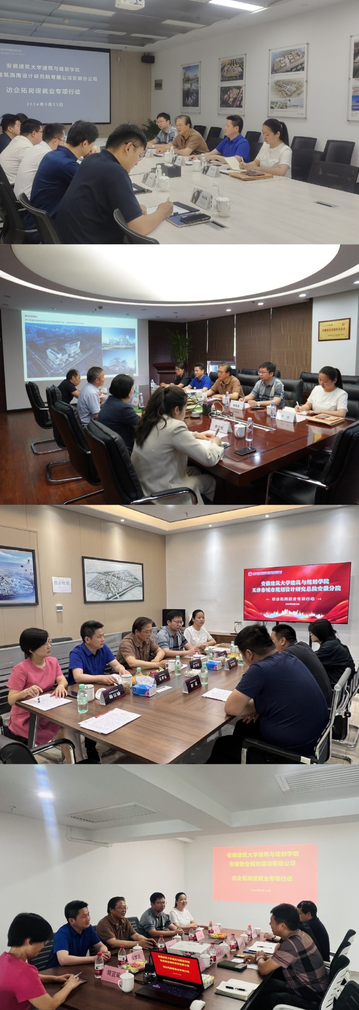 本网讯 为精准拓展就业岗位,持续优化就业指导服务,学院积极开展“访企拓岗”专项行动,促进毕业生高质量充分就业。2024年5月23日,建规学院党委书记唐劲松率学院领导班子成员、教师代表、毕业班辅导员赴中国建筑西南设计研究院有限公司安徽分公司、安徽寰宇建筑设计院、海河集团天津规划总院安徽分公司、安徽敬业规划咨询有限公司开展展访企拓岗活动。