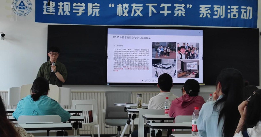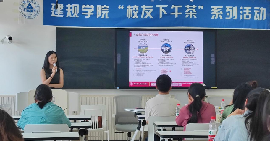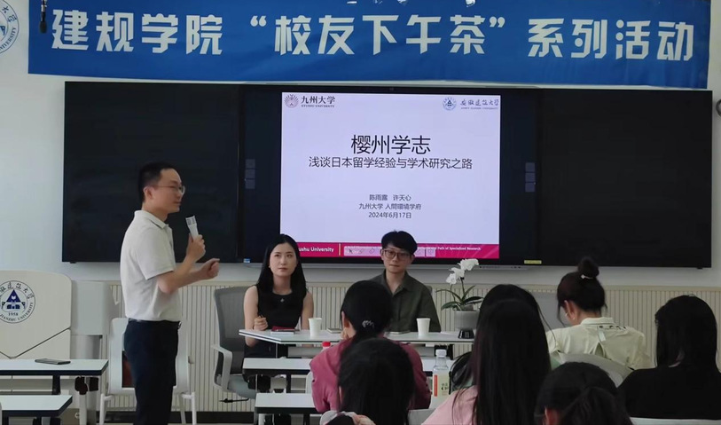 陈雨露,我校风景园林专业18届本科毕业生,现为日本九州大学人间环境学府建筑环境专业博士三年级研究生,主要研究方向为建筑环境控制,她首先进行了自我介绍,然后分享她在日本留学期间的日常生活与爱好、研究方向、科研项目经历与其成果转化。