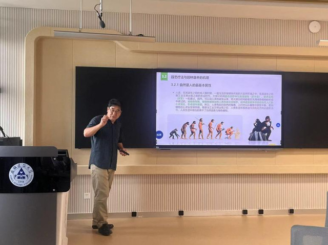 活动开始,李教授深入浅出地介绍园艺疗法、园林康养、森林园林康养师等概念的基础上,归纳了当今国际上流行的园艺疗法与园林康养的类型,总结了园艺疗法与园林康养的功效,从六个方面探究了园艺疗法与园林康养的机理。