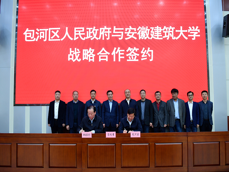 本网讯 10月19日,我校与包河区人民政府签订校地战略合作框架协议。校党委副书记、校长黄显怀,包河区委书记陈东出席签约仪式并致辞,包河区委副书记、区长李炜主持,校党委常委、副校长蔡新立和包河区副区长钱炳代表双方签约。