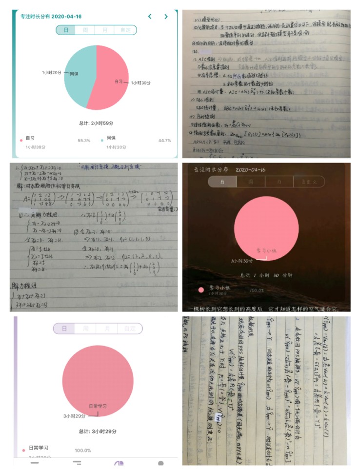 活动的第一部分是学习打卡活动。由各班班委配合将本班同学分为若干组,挑选成绩优秀的同学为组长,督促组员每天将学习状态拍照上传至线上学习交流打卡群,并由组长汇总照片发给相关负责人交学院留存。