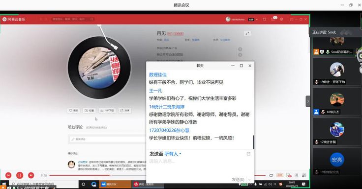 最后,与会老师、同学纷纷在留言区留下自己的祝福和寄语,欢送会在合唱《再见》中圆满结束。本次欢送会是数理师生情的一种流露,也是对2020届毕业生的一份祝福和期许。相信全体毕业生定会以终为始、拾级而上,承载着学院的希望,肩负着新时代的历史使命,找到适合自己的发展平台,在今后的工作中为母校和学院争光添彩。(作者:赵妮;审稿:陈剑锐)