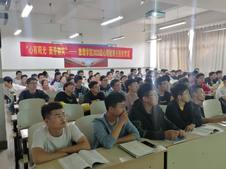 本网讯 为帮助新生更好地适应大学生活,以饱满的热情投入学习。10月12日,数理学院党委书记余鸿以“心有阳光,面带微笑”为主题20级新生开展了一场别开生面的心理健康教育讲座。
