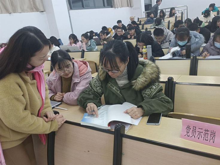 学生党员是朋辈活动中的标杆与榜样。疫情期间,为积极落实“停课不停学”要求,数理学院多措并举创新学业互助模式,学生党员借助网络开展线上学业辅导,通过学业帮扶、党员自习室深化朋辈教育互助,引导学生树立奉献精神和担当意识,提高学生居家学习效果,做好疫情期间学风建设。开学以来,为进一步做好学业困难同学的帮扶工作,学生党员深入新生自习室,进一步发挥党员朋辈在学风建设方面的示范带头作用,为数理学院营造浓厚的学习氛围。