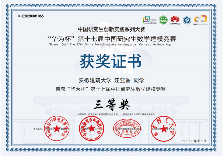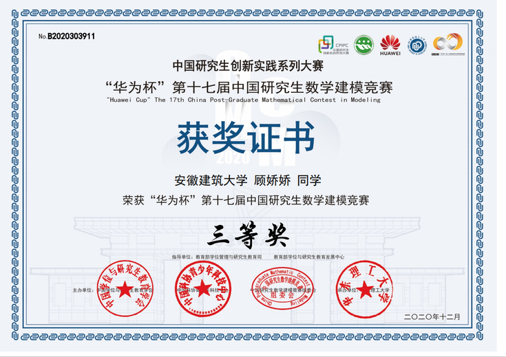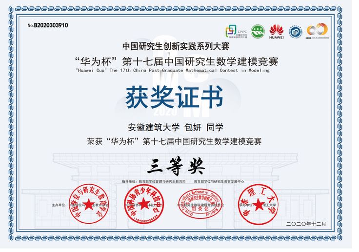 近日,由教育部学位与研究生学会等主办,华东理工大学承办的2020年“华为杯”第十七届中国研究生数学建模竞赛圆满落下帷幕,评选结果已于日前公布。
