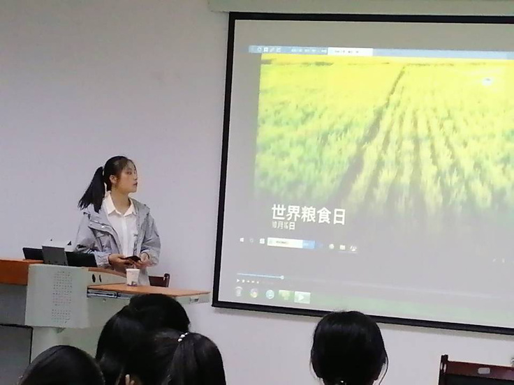 各班级团支书分别从“世界粮食日、光盘行动、节约粮食建议”三个角度为大家讲解关于“厉行节约,拒绝舌尖上的浪费公约,呼吁同学们养成节约的好习惯。