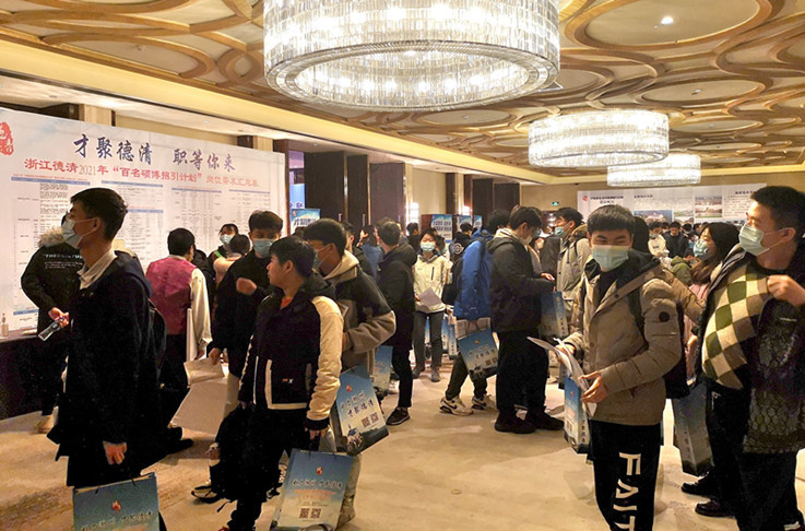 宣讲会上,德清县县委常委、组织部长黄建丰介绍了县情,并推介解读德清县大学生就业创业最新政策,欢迎我省高校毕业生来德清县就业创业。会后,“才聚德清·职等你来”招聘会正式举行。本次招引共有机关事业单位、教育卫生系统、国企、研究院及重点骨干企业等50家单位,涉及事业单位编制岗位47个、博士后岗位19个、硕博岗位206个、大学生岗位400个、客座(兼职)教授岗位4个。招聘需求涉及建筑建材、电子信息、医药化工、金融财会等众多行业领域。
