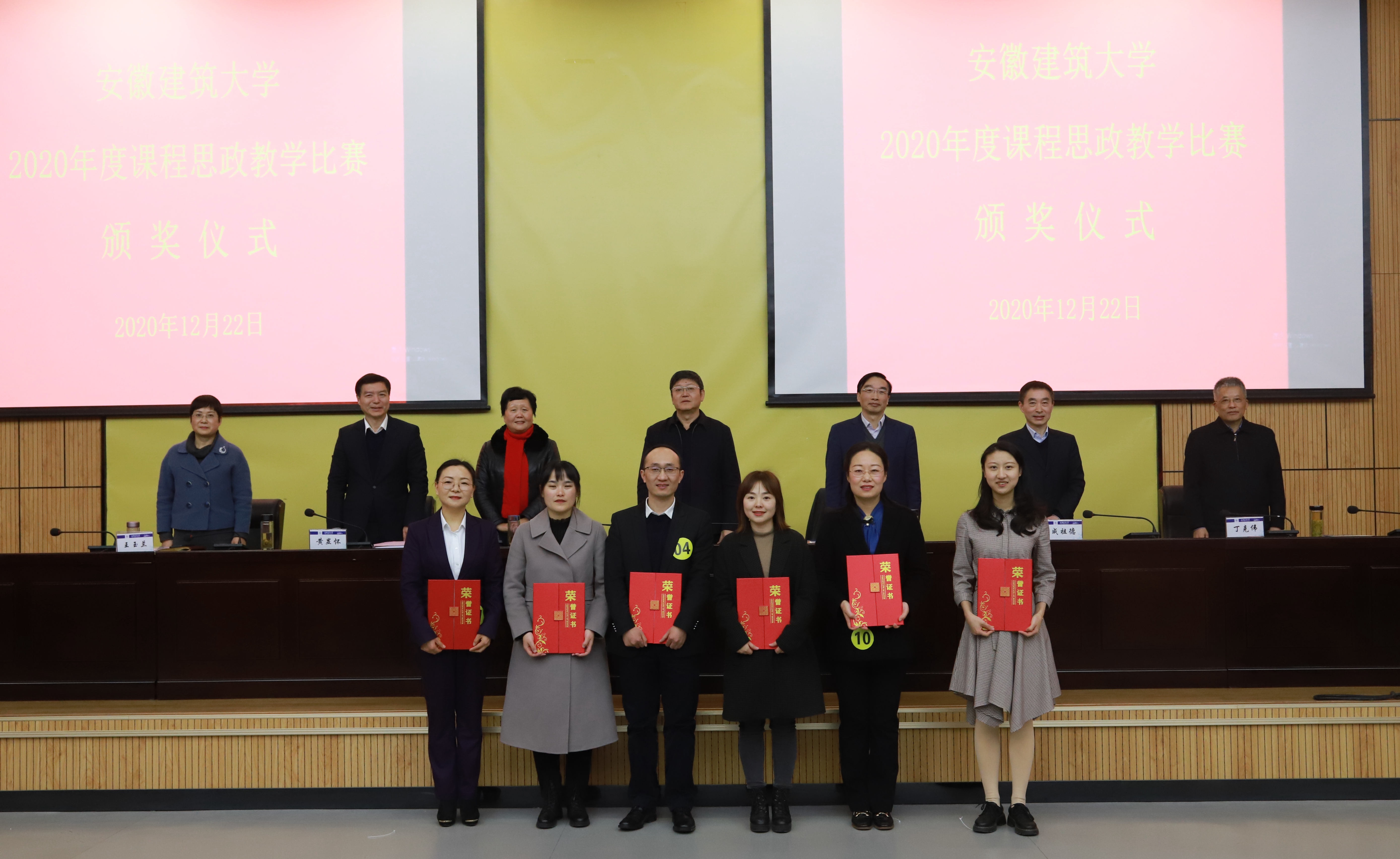 本次课程思政教学比赛从10月中旬启动,教师发展中心等部门组织300位教师参赛,经过院级初赛、校级预决赛、校级决赛,最终,校党委副书记、校长孙道胜宣布材化学院马婕等6名老师获得一等奖,土木工程学院葛大丽等10名老师获得二等奖,土木工程学院付佳丽等20名老师获得三等奖。