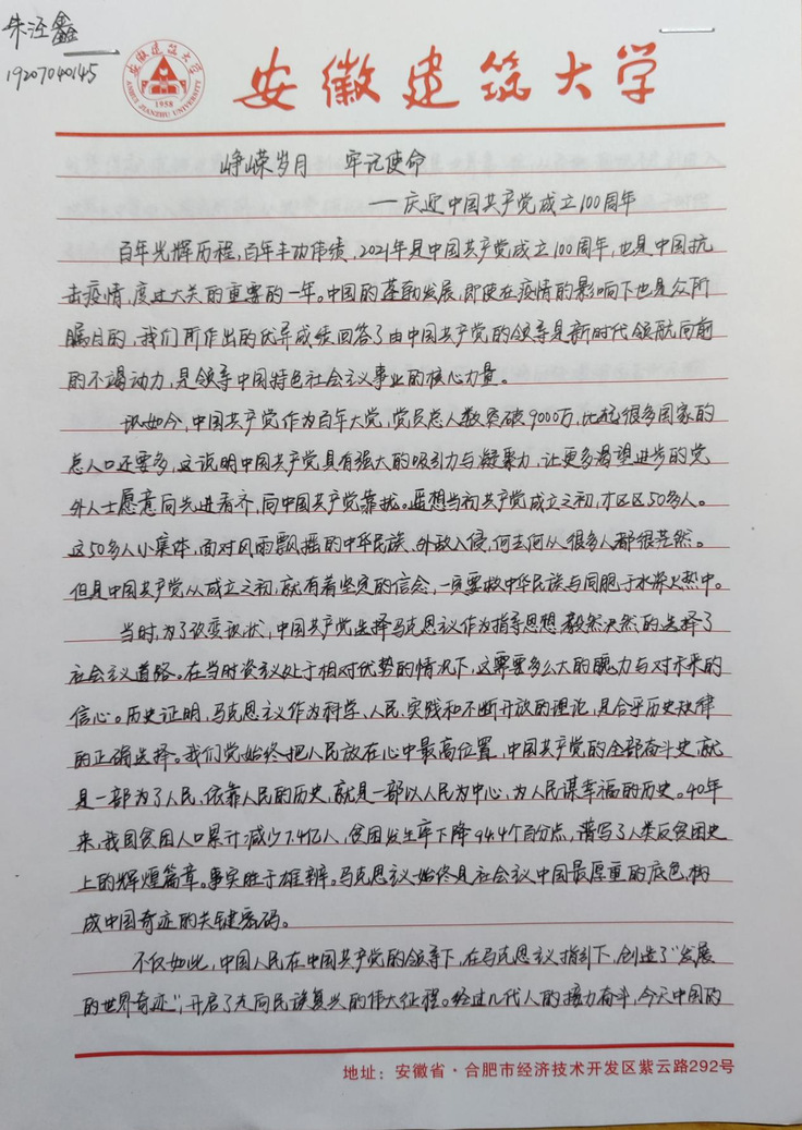 本网讯 胸怀千秋伟业,恰是百年风华。2021年是中国共产党建党100周年,为庆祝中国共产党百年华诞,激发广大学生爱党爱国的热情,近日,数理学院开展“传承红色基因,喜迎百年华诞”建党一百周年主题征文活动。