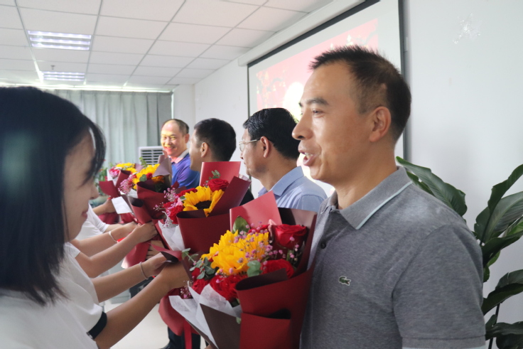 合着同学们的歌声,学生代表向到场教师依次献花。他们手捧鲜花,一句“老师您辛苦了!”包含了千言万语。统计系刘斌教授代表今年教龄30年的教师发言,他回顾了自己30年的教学生涯,表达了自己的育人初心及教书育人的乐趣和价值。