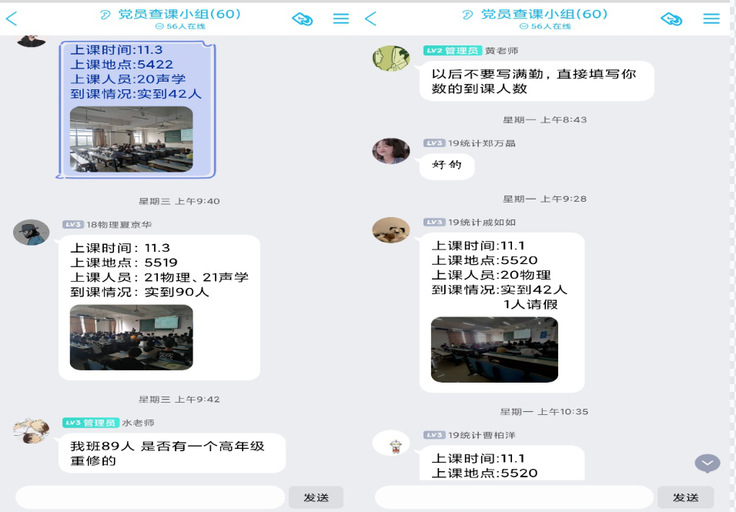 学风督导严考勤。为进一步健全和完善学风建设长效机制,建立长效的学生日常行为督导体系,规范学生上课、晚自习纪律和考勤管理制度学院成立“学风督小组”,由学生党员与学生会工作人员组成,负责日常课程、晚自习考勤工作,每天在群里上报学生课程考勤情况针对缺课、迟到学生辅导员进行谈心谈话,引导学生养成良好学习习惯,夯实学院学风建设组织基础