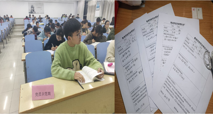 朋辈帮扶共奋进开学以来,学院建立党员示范岗,选派优秀学生党员代表到21级晚自习教室,与新生进行学业交流,帮助新生答疑进一步发挥党员朋辈在学风建设方面的示范带头作用,为数理学院营造浓厚的学习氛围。同时,学院还注重培养同学之间互助团结的优良品质,营造良好学习氛围,成立学业帮扶小组,帮扶同学和被帮扶同学签订学业帮扶合同书,小组成员一般为六到七位人,负责对该组成员进行帮扶,并且定期汇报学习情况。