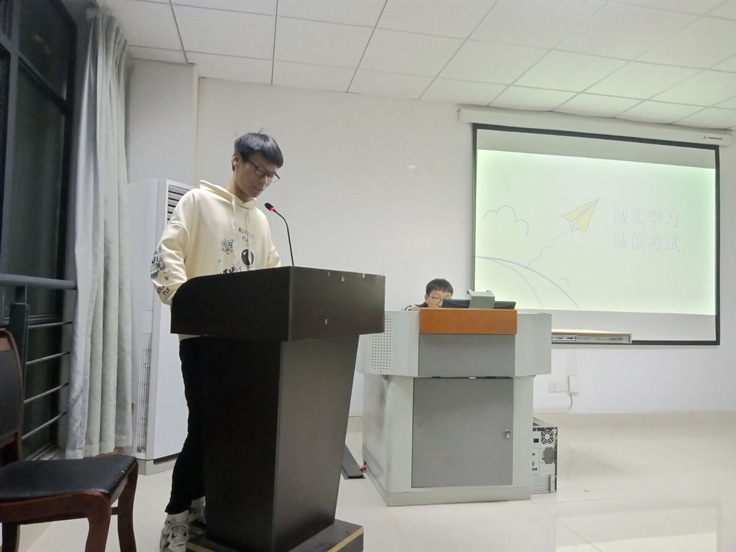 宣讲会上,辅导员首先宣读诚信考试倡议书,引导大家端正考试态度,在考试中严格约束自己,遵守考场纪律,营造良好考试环境并通过真实案例向大家强调考试作弊的严重后果。接着学生代表2020级统计学专业张文俊向大家分享了近期自己专业课复习心得与体会,最后由主持人带领学生进行诚信考试宣誓,大家纷纷在诚信考试宣传条幅上签上自己的名字。