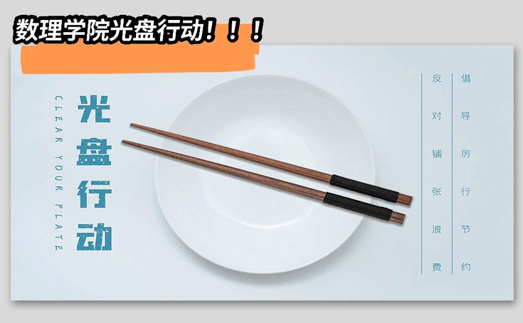 本网讯 为深入贯彻落实习近平总书记关于制止餐饮浪费行为的重要指示精神,弘扬中华民族尊重劳动、勤俭节约的传统美德,结合数理学院学生生活实际,针对食堂饭菜浪费现象,数理学院学生会在生活区主干道举办了“聚点滴之俭,添光盘之彩”活动,响应国家“光盘行动”的号召。