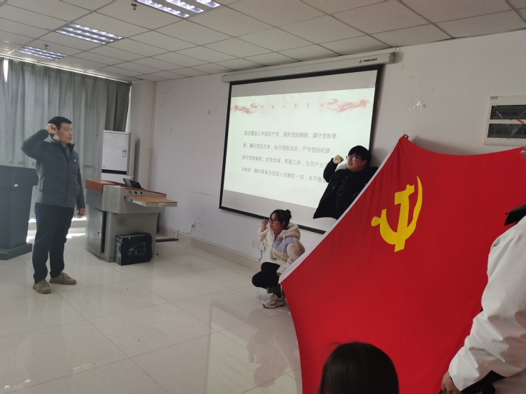 成立大会后,支部开展第一次党日活动。与会党员在支部书记刘彪老师的带领下重温了入党誓词,铮铮誓词激励大家未来以更加饱满的热情发挥先锋模范作用。随后,师生党员就十九届六中全会精神及习近平主席2022年新年贺词开展学习座谈,同志们纷纷表示在学习中深刻领会了一名党员的责任与担当,在今后生活中,要用实际行动去践行初心和使命。