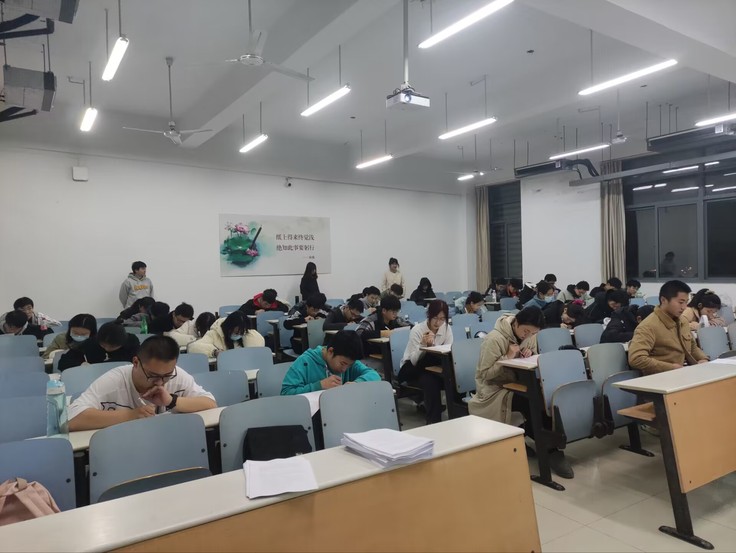 本次考试共设立四个考场,22级新生辅导员助理负责监考,模拟考严格遵循全国大学英语四级考试大纲标准,考场上同学们全神贯注,态度端正,严守纪律,认真答题,21点50分,本次模拟考试正式结束。同学们走出考场后纷纷表示,通过这次模拟考试充分感受到了考试的氛围,增强了对接下来的四六级考试的信心。