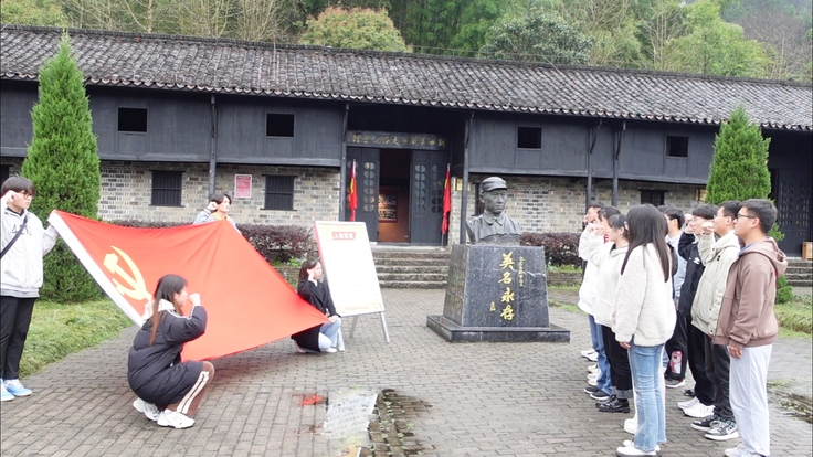 新四军四支队驻舒旧址位于舒城县高峰乡东港村韦家大屋1938年51939年6月,新四军四支队指挥机关驻扎于此,2021年入选全国“建党百年红色旅游百条精品线路第19条线路”。党员们满怀崇敬,瞻仰烈士铜像,认真聆听讲解员为大家介绍新四军第四支部驻舒旧址的文化历史和发展历程,仔细品读抗日英雄们的光荣事迹,细致了解高敬亭烈士短暂而不平凡的人生历程,深刻领悟革命先烈们大无畏的牺牲精神。参观结束后,全体学生党员在高敬亭烈士铜像前面向庄严的党旗,重温入党誓词。