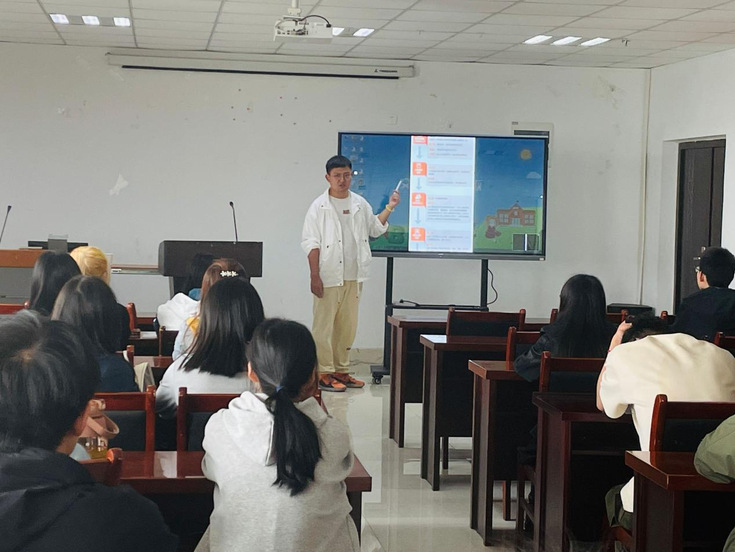 辅导员水天柱担任第二课主讲人,水天柱以“入党流程”为主要内容。向大家讲述了入党的五个阶段,二十五个步骤。水天柱强调入党是严肃且神圣的,希望大家在经过充分考虑后积极申请入党,向党组织靠拢,用自己的青春和热血为祖国书写辉煌篇章。