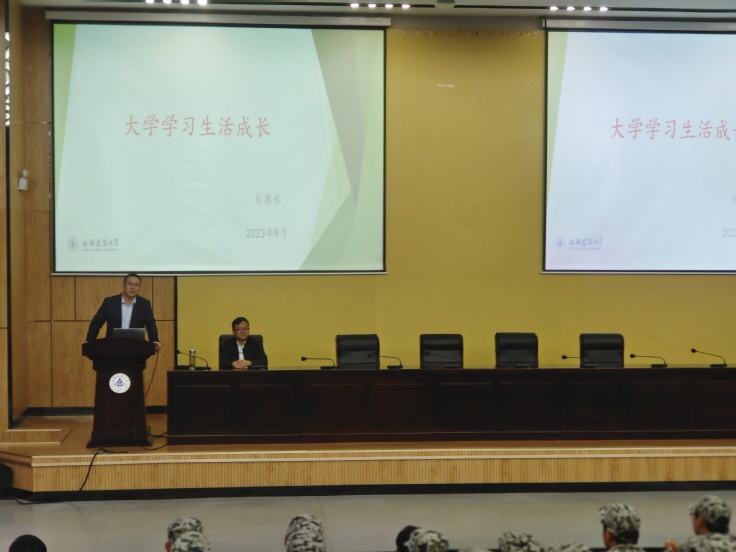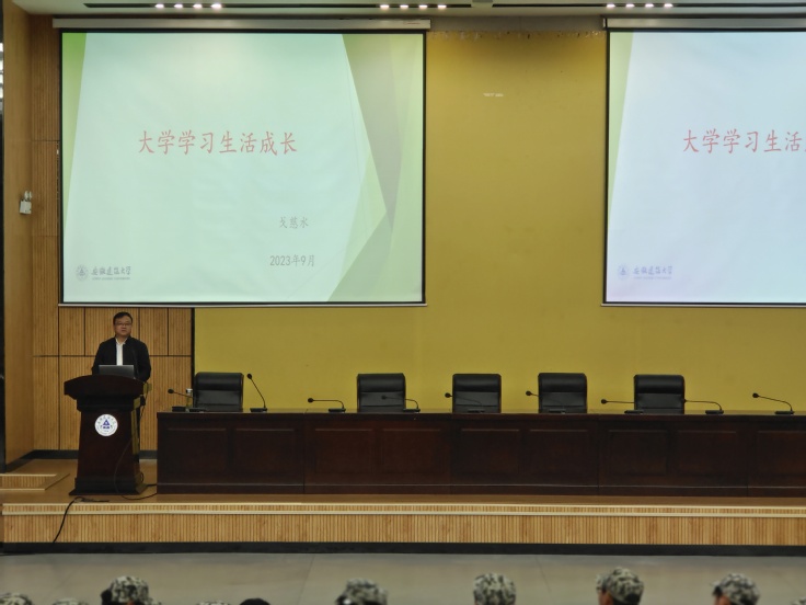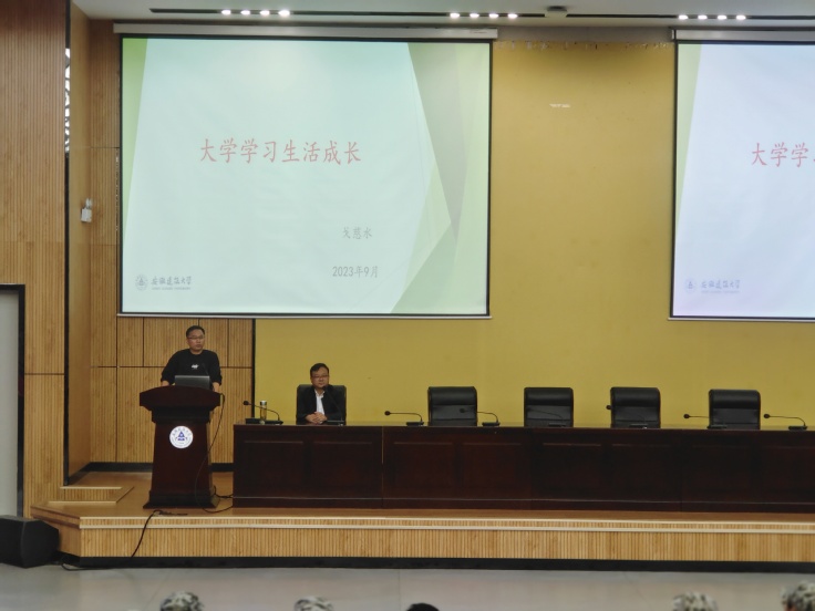 戈慈水首先对学校的基本情况进行简要介绍。其次从专业思想、考研目标、学习方法、核心能力、学科竞赛、集体生活等方面对新生进行了详细介绍,引导23级新生树立起自己的明确目标,踏踏实实做好每件事。