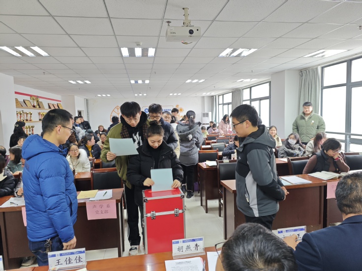 大会进行选举。选举前,强调了换届选举纪律。会议表决通过了《中共ku游官方数理学院委员会和纪律检查委员会选举办法(草案)》,党委、纪委委员候选人名单以及监票人、总监票人名单。大会采用差额选举的办法和无记名投票的方式,选举产生了新一届中共ku游官方数理学院委员会和纪律检查委员会。