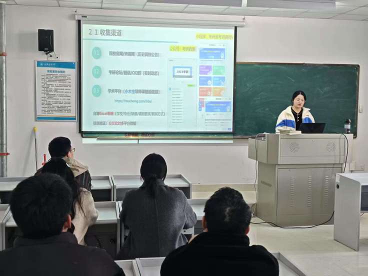 本网讯 3月6日,数理学院在综合实验楼416教室举办了考研调剂经验分享会。本次分享会由研究生会主席刘子豪主持。数理学院2025年硕士研究生笔试达线学生参加了本次分享会。