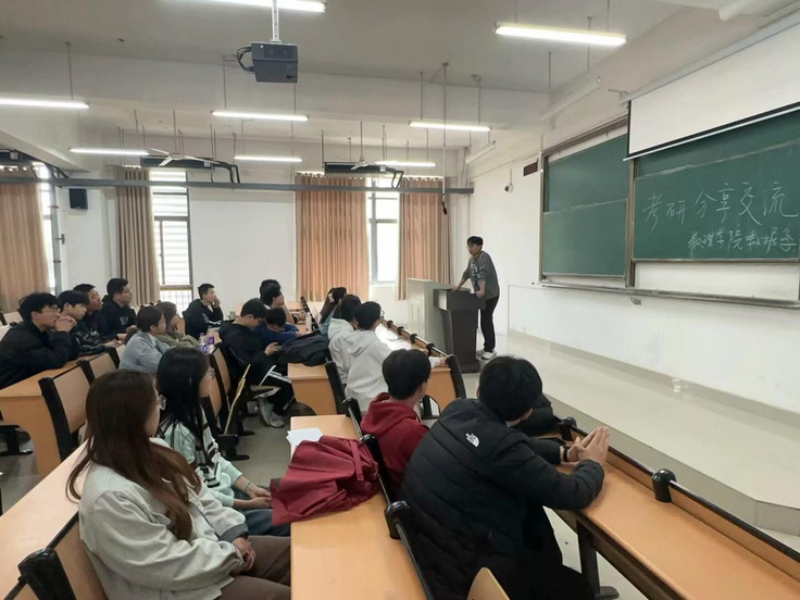 本网讯 为帮助2026届学生及早明确考研目标、掌握备考技巧、科学规划备考,4月2日下午,数理学院数据科学系在逸夫楼5121举办了考研规划与交流会。本次交流会由数据科学系党支部书记谢新平教授主持。今年考取硕士研究生的学生代表和数据科学系相关老师出席了交流会。数据计算及应用专业近50名同学参加了交流会。