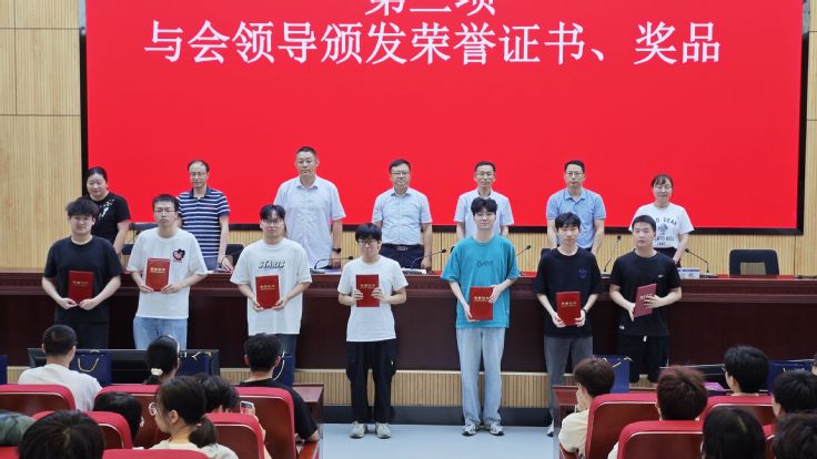 大会在庄严的国歌声中拉开帷幕,全体与会人员起立,齐声高唱《国歌》。方绍正宣读了数理学院关于表彰2025届考研优秀学子、优秀寝室的决定。与会领导依次为考研优秀学子和优秀寝室代表颁发荣誉证书与奖品。一本本证书、一份份奖品,承载着学院对他们努力的肯定与鼓励,台下掌声雷动,向优秀榜样致以敬意。