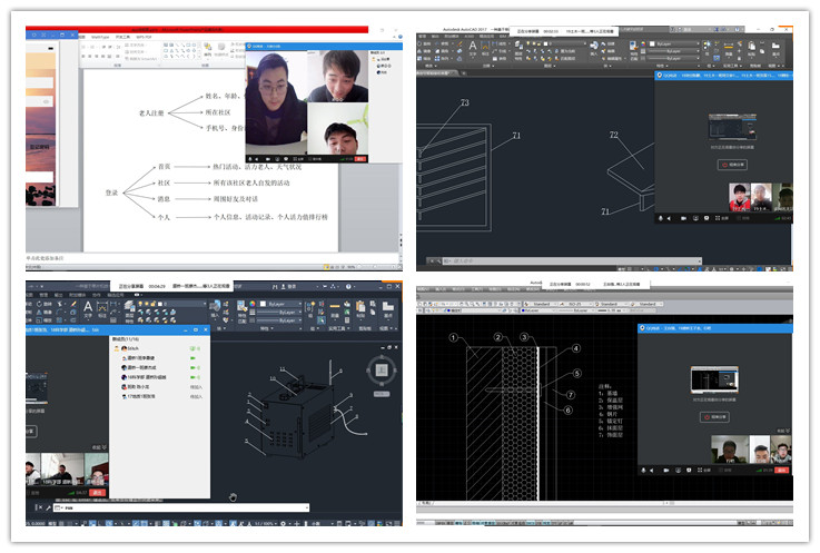 科研创新兴趣小组 特殊长假期间,同学们自发成立科研学习小组和创新创业团队,持续推进科研、创新训练计划。同学们利用视频平台学习论文写作,讨论图纸设计和零部件优化,分享制图和写作技巧。通过科研小组和创新小组,同学们对大创结题和下一年度的大创申报进行了周密安排和充分的准备,为新学期参加相关学科竞赛做足了功课,最大化的利用了假期时间。